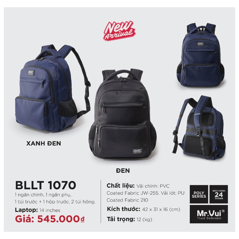 – Bộ sản phẩm đầy đủ: 1 balo laptop Mr. Vui 1070 + 1 phiếu kích hoạt bảo hành