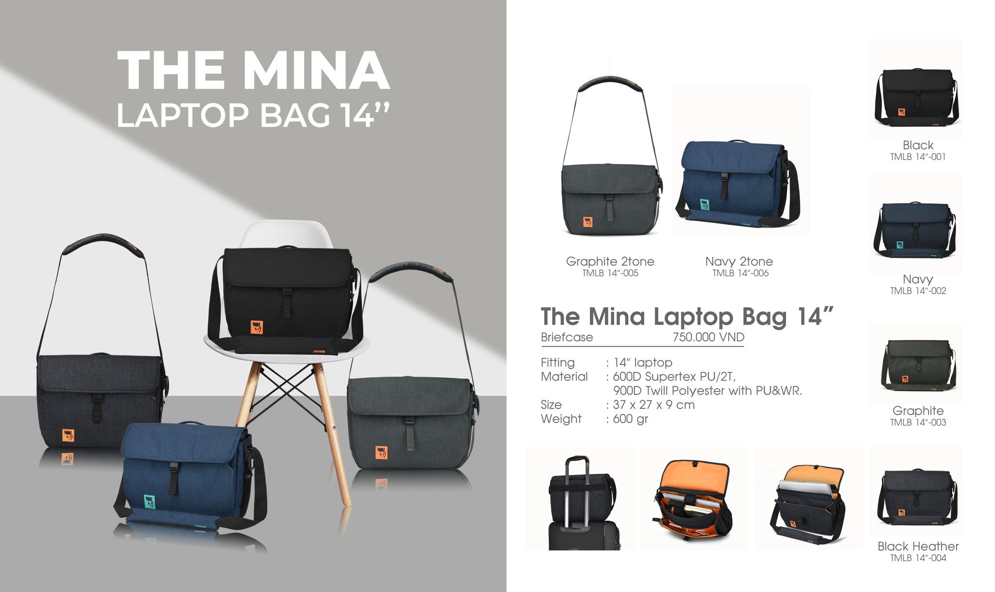 The Mina Messenger Bag 14 inch được thiết kế với: