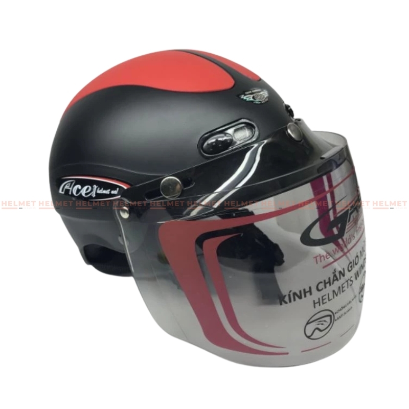 - Kính có kèm theo lưỡi trai để che nắng, kính dài 2/3 mặt người đội, phù hợp lắp cho các dòng mũ 1/2 và 3/4 đầu