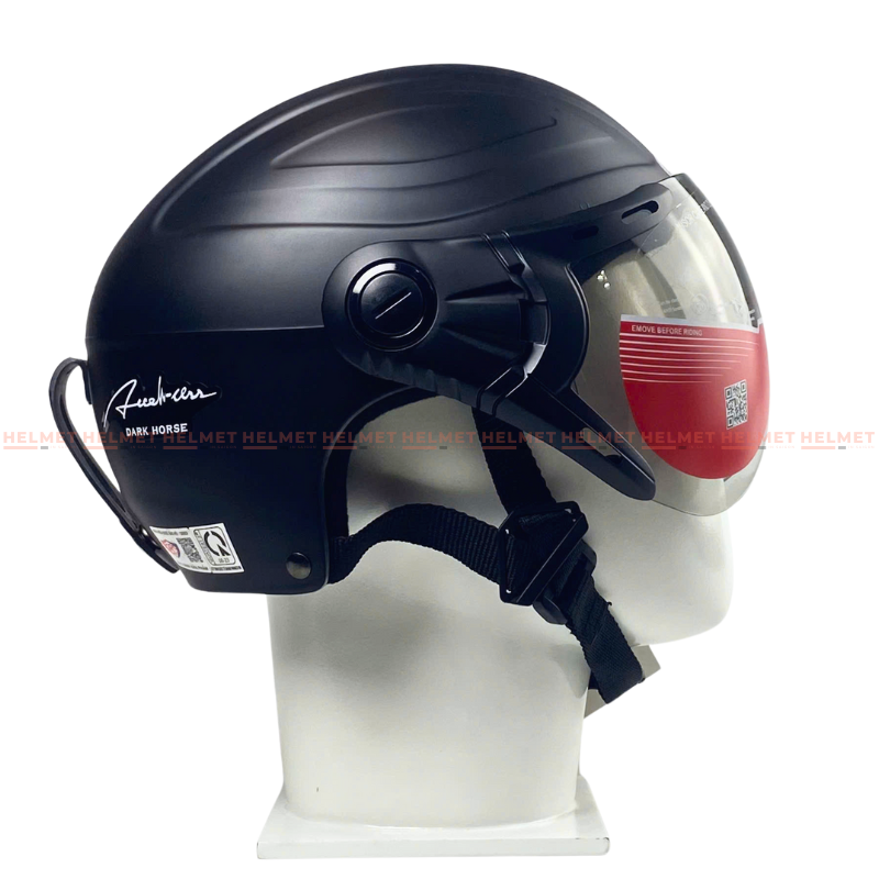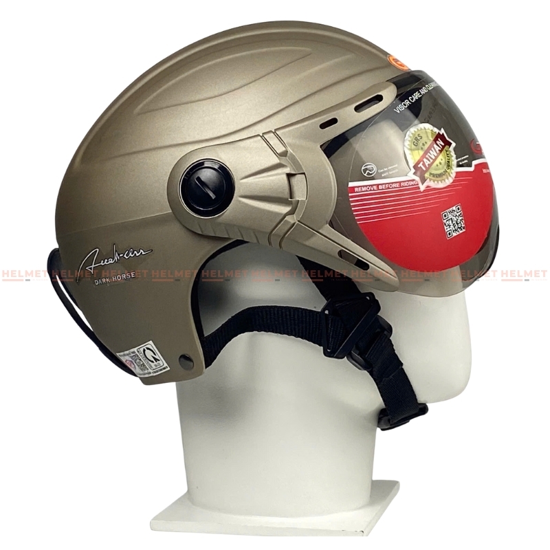 - Chất liệu: Vỏ mũ làm từ nhựa ABS nguyên sinh cứng cáp, chịu va đập tốt; kính làm từ nhựa PC trong suốt, chống trầy và chống tia UV