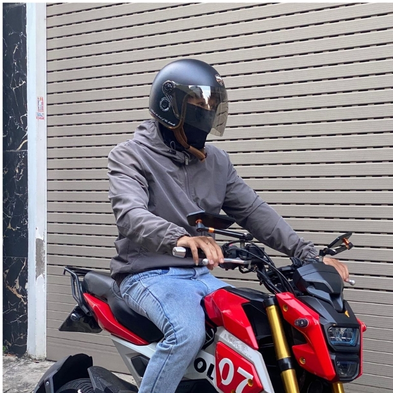 Kính chắn gió màu trà nhạt, thích hợp dùng cho cả ngày và đêm, hạn chế chói nắng, bụi, gió và côn trùng khi đi xe