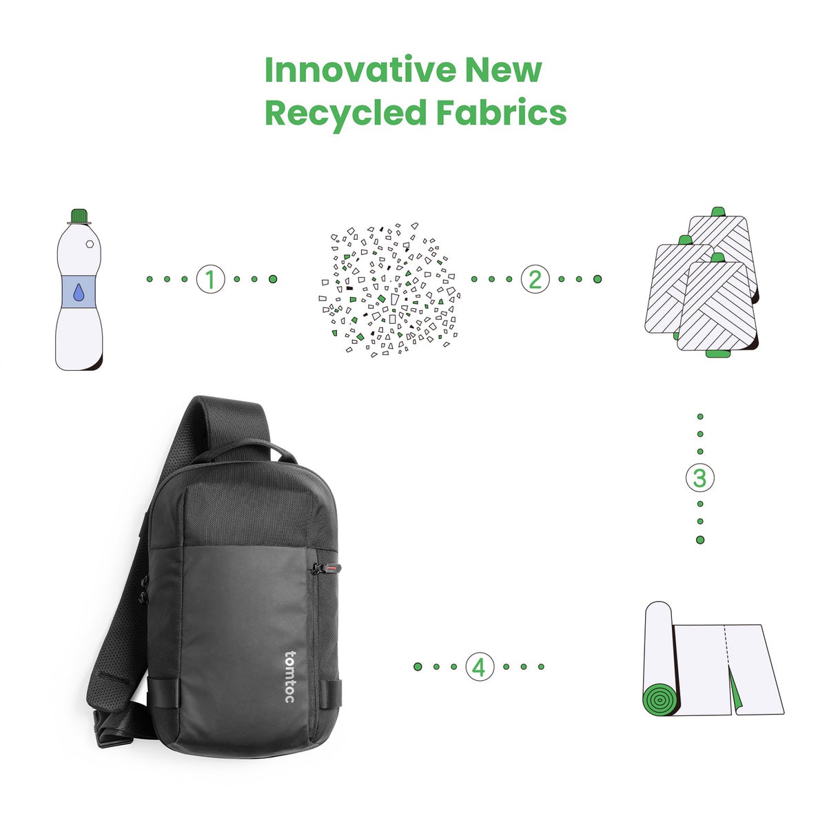 Được làm bằng vải tái chế, giảm tiêu thụ năng lượng và ô nhiễm, chống thấm nước và chống mài mòn. Được sử dụng khóa kéo YKK và khóa Duraflex chất lượng cao, mang lại thời gian sử dụng lâu dài.